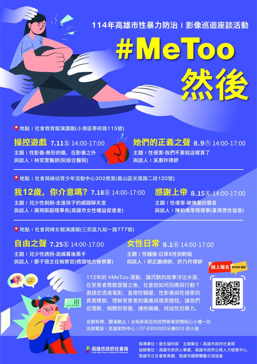 | 公告主題 | 「#MeToo 然後」114年高雄市性暴力防治影像巡迴座談活動」 |