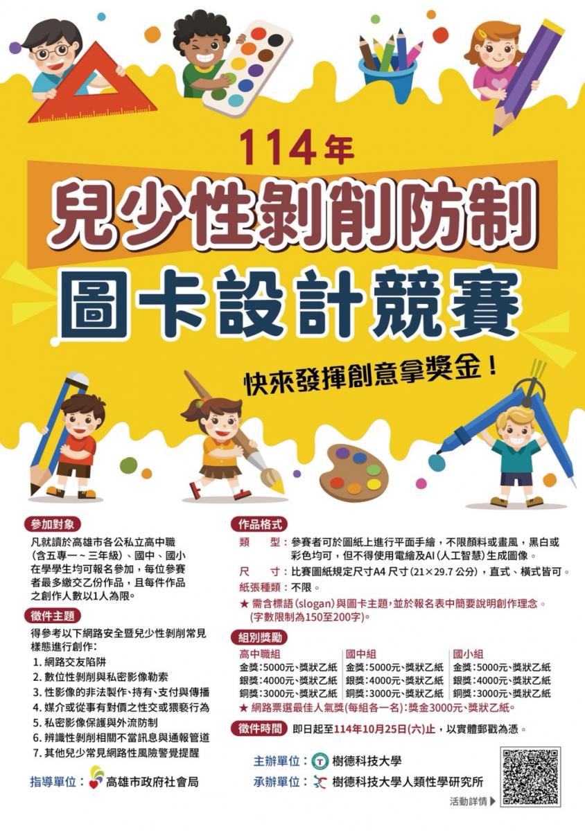 | 公告主題 | 114年高雄市兒少性剝削防制圖卡設計競賽 |