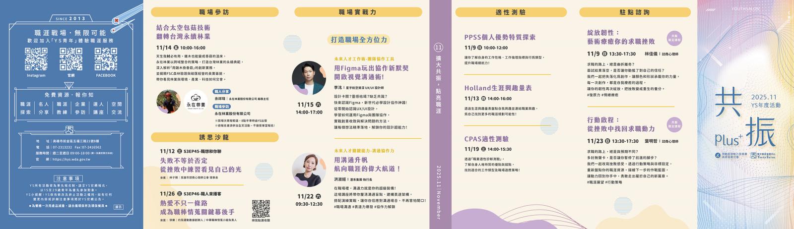 | 公告主題 | 青年職涯發展中心(Youth Salon,簡稱YS)114年11月活動DM |